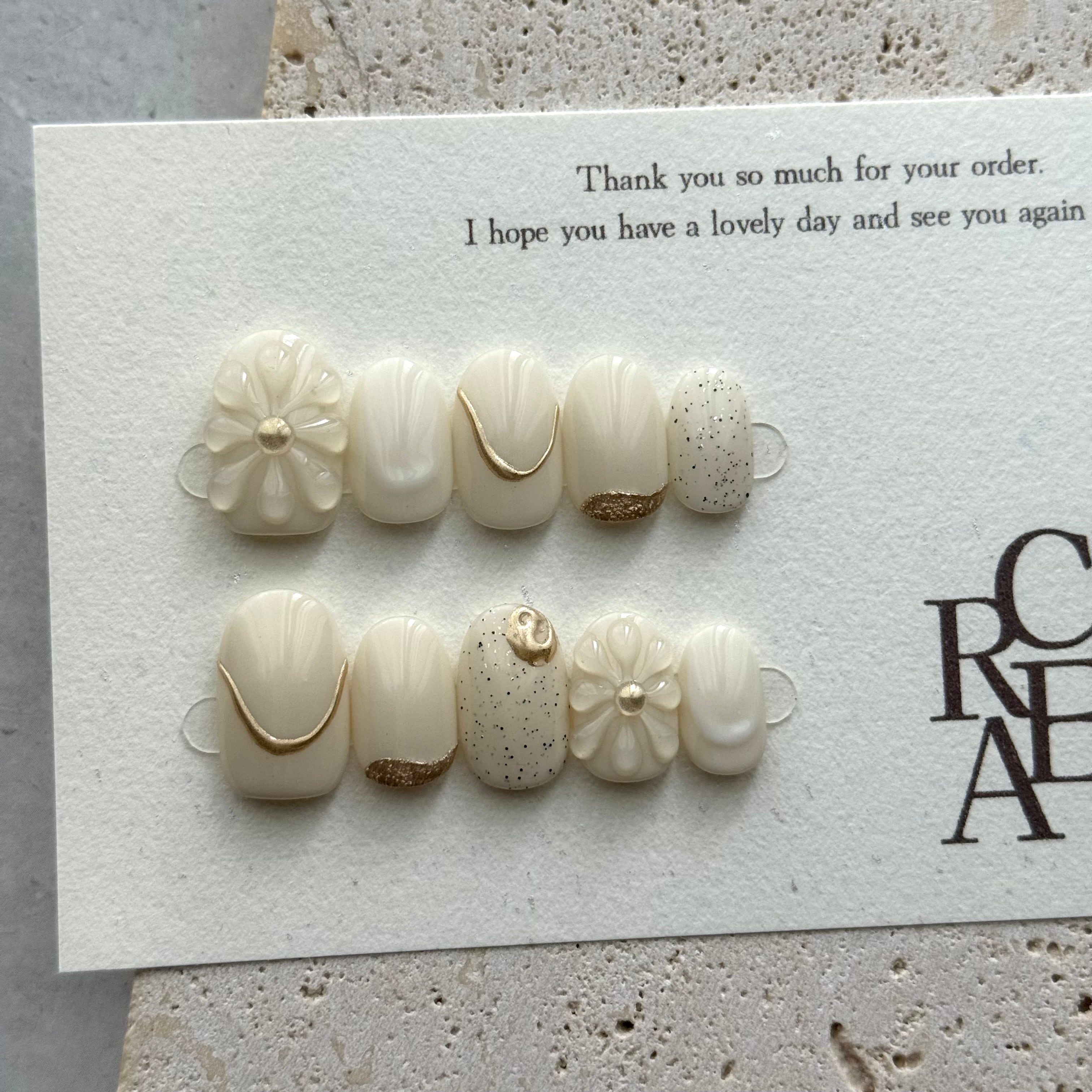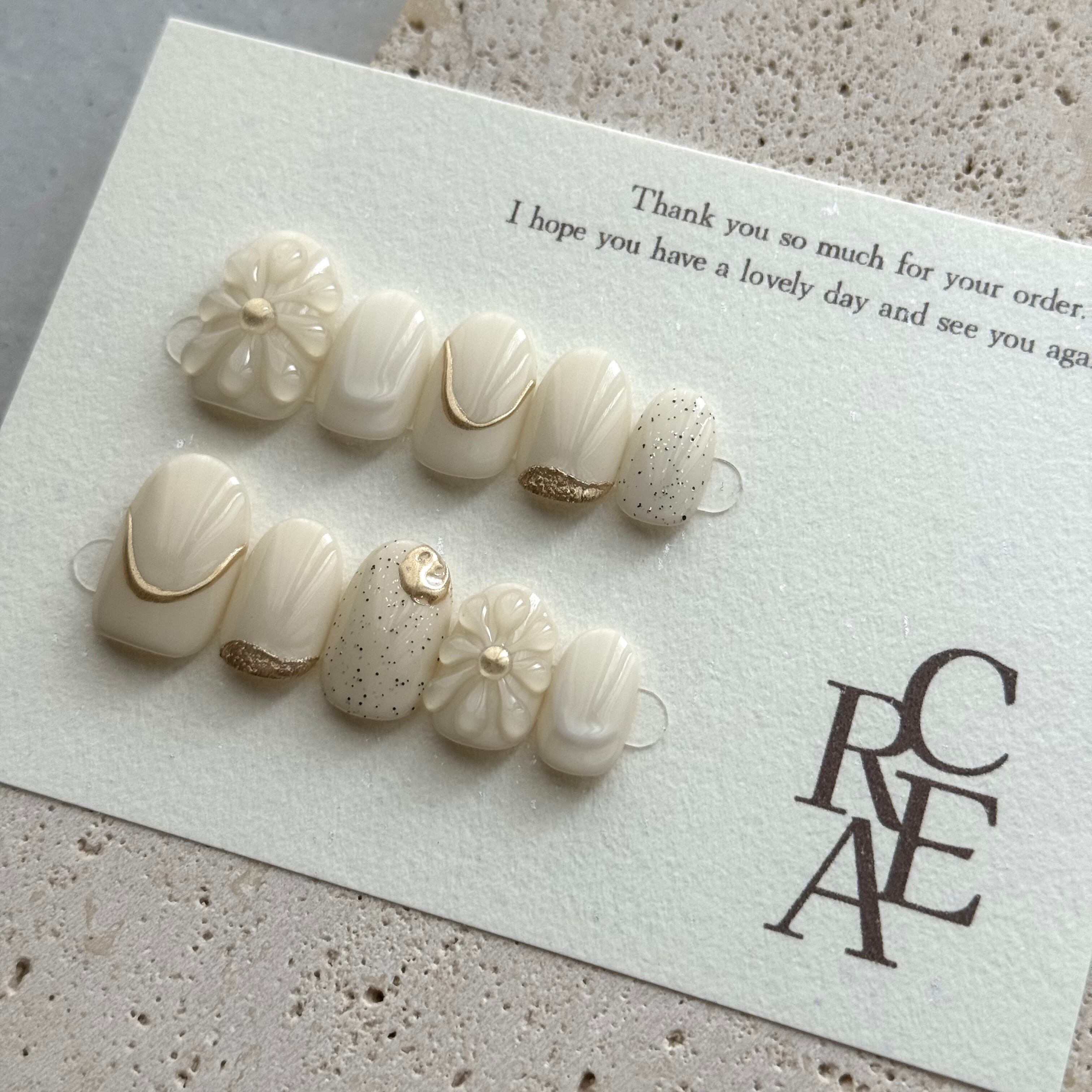 ネイルチップ 淡色ネイル ホワイト フラワー