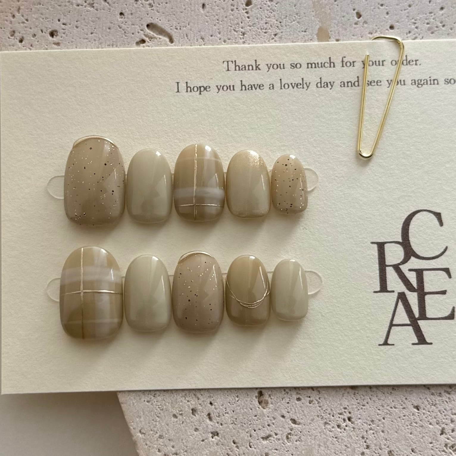 ネイルチップ 淡色 ニュアンス 秋 冬 チェック ベージュ