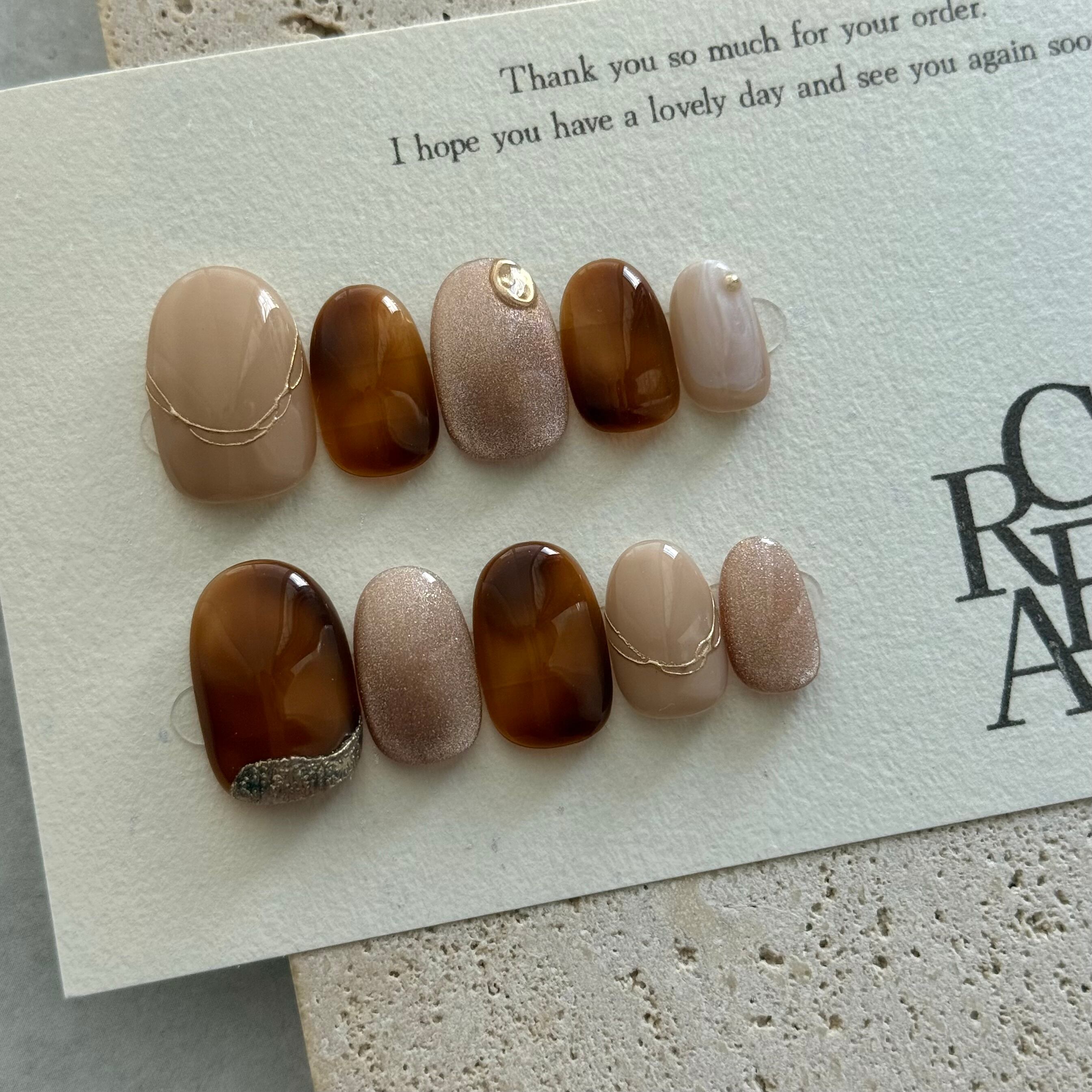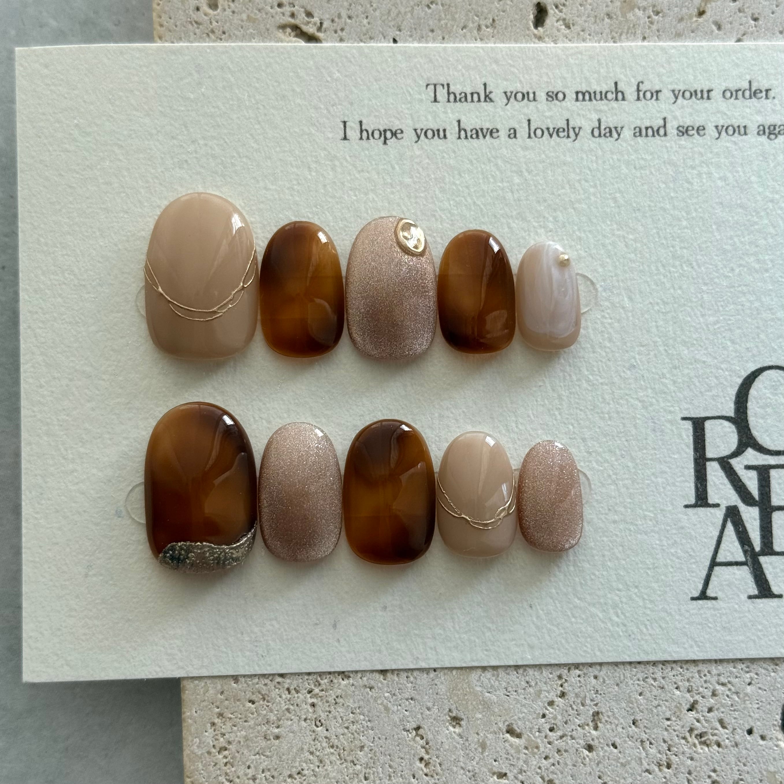淡色 ニュアンス ネイル べっ甲 ブラウン ベージュ ネイルチップ